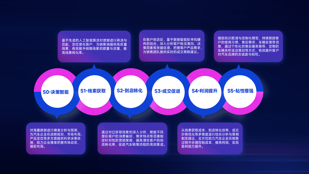 通过拓宽潜在客户来源、、、、优化线索分配并提高到店转化率,,,,以增强销售效率。。同时,,利用线索数据不断优化分析模型,,,有效提升转化率,,,扩大营销影响力。。